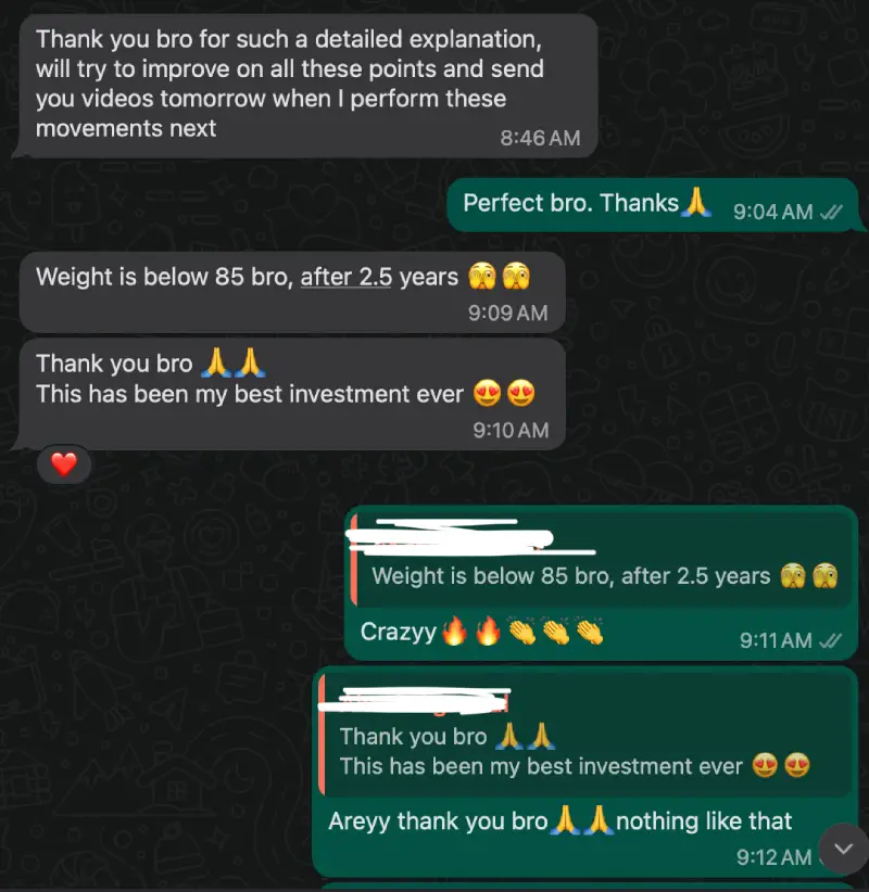 You’ll receive detailed instructional videos for each exercise. In the first few weeks, you’ll be expected to send us clips of your workouts for personalized feedback. If needed, we can schedule up to 1 live form-check session to refine your form.